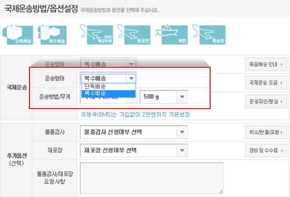 ② 국제배송 직전 상태인 포장완료 상태에서 중량을 측정하기 때문에 박스, 충격완화용 신문지 등의 무게가 첨가됩니다.