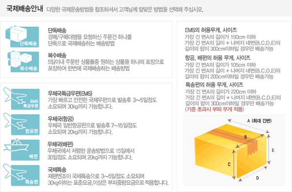 | 주문 후 예상 배송일 | 우체국특급우편(EMS) 발송후 3~5일정도 / 재팬드립 국제특송 발송후3~5일정도 소요 예상됩니다. |