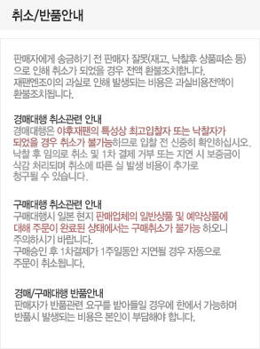 주문체결 후 임의로 취소 및 1차 결제 거부 또는 지연 시 보증금이 삭제 처리되며 취소에 따른 발생 비용이 추가로 청구될 수 있습니다.